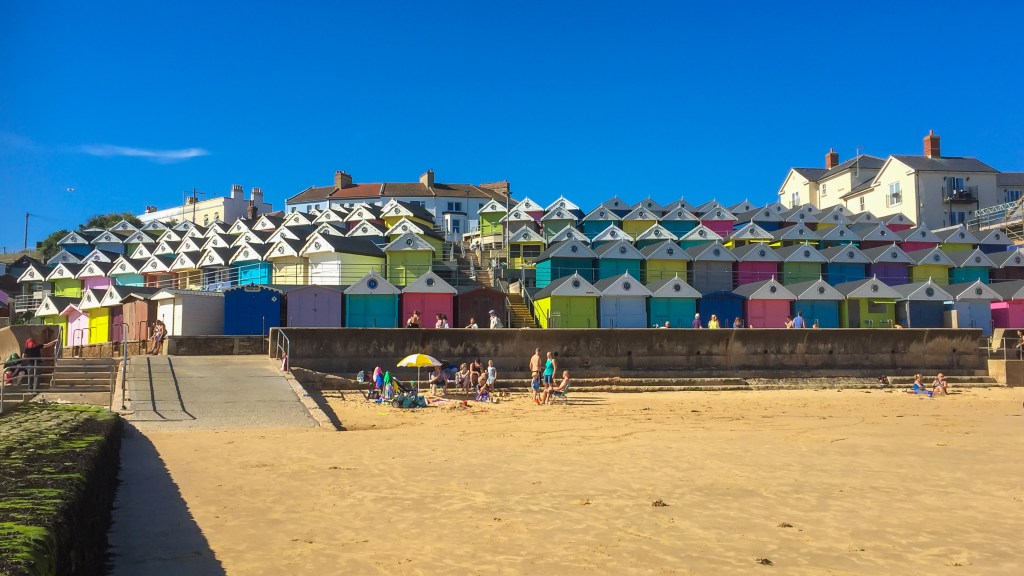 Beach huts at Walton-on-the-Naze on a sparkling summer day. A photo by Matt Mallett from my book on the 25 years of the Essex High Sheriffs’ Fund with Essex Community Foundation.