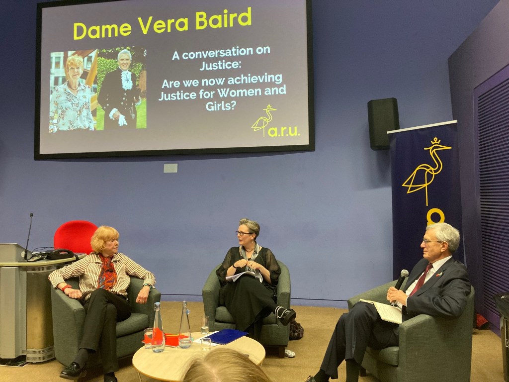 The first of my ‘Conversations on Justice’ was held at ARU with Dame Vera Baird DBE KC and Dr Theresa Redmond a Dawes Senior Research Fellow at PIER – the policing research institute. Focusing on whether we are achieving progress in tackling ‘Violence against Women and Girls’ it was a stimulating but sobering occasion. Dame Vera outlined a number of key challenges. She argued that the still muddled legislation around ‘Domestic Abuse’ is a block to progress. The 2015 legislation on controlling and coercive behaviour, which lies at the very heart of Domestic Abuse, has helped, but it remains complex and hard to implement. Some changes are in hand, but the complexity makes it difficult for the police to investigate who, as a result, tend to default to charging with easier to prove assault offences. Those, in reality, are a symptom of the controlling behaviour and so the underlying offending behaviour, even if recognised, goes unpunished. In addition to these challenges with the legislation and policing practices, Dame Vera also outlined concerns with the thresholds for prosecution imposed by the Crown Prosecution Service in some area of violence against women and girls, and particularly sexual offending.